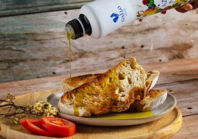 Enlever le film, badigeonner le tout avec de l'Huile d'Olive Gallo Classique.