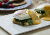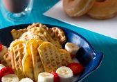 Quando a panqueca estiver com furos na parte de cima, vire e espere 20 segundos.